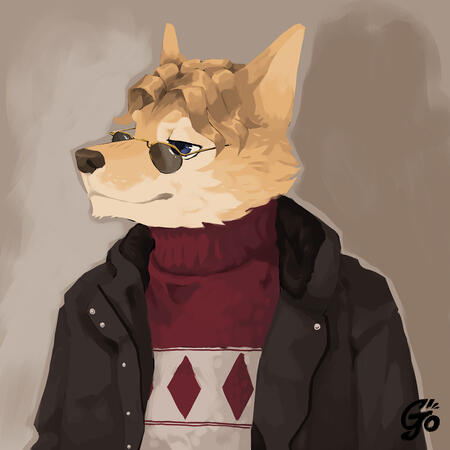 A sketch up to a half-body. Includes a single colour background. Has basic colouring.