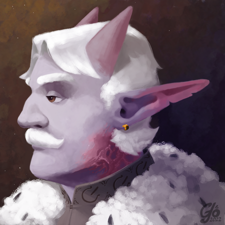 A sketch up to a half-body. Includes a single colour background. Has basic colouring.